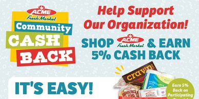 ACME Fresh Market Community Cash Back runs Aug. 1, 2025 - Feb. 15, 2026. Shop at ACME & give your receipts to BACM. They will share 5% of your spending with us. Last year, together, we raised $967.91 for the food pantry.